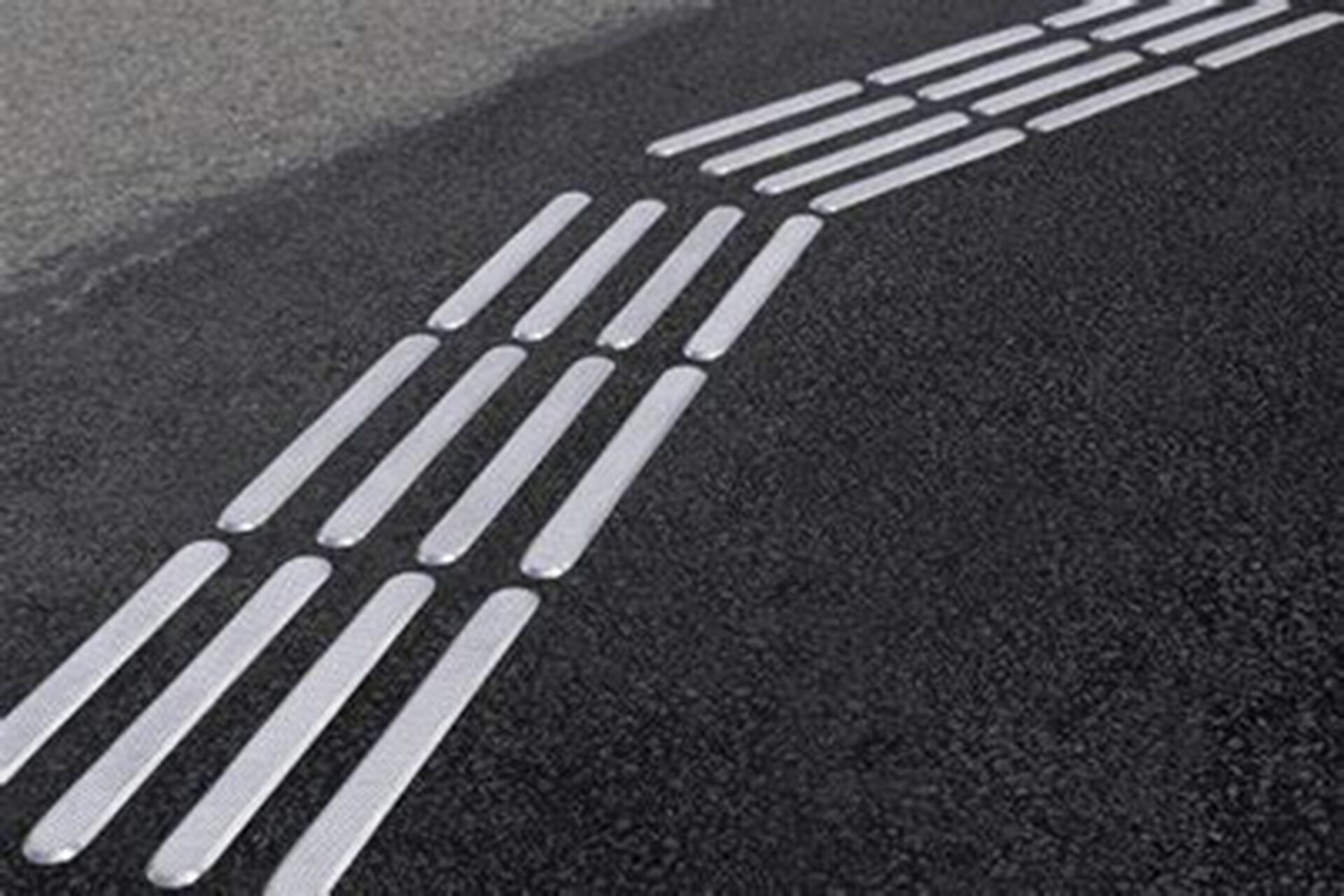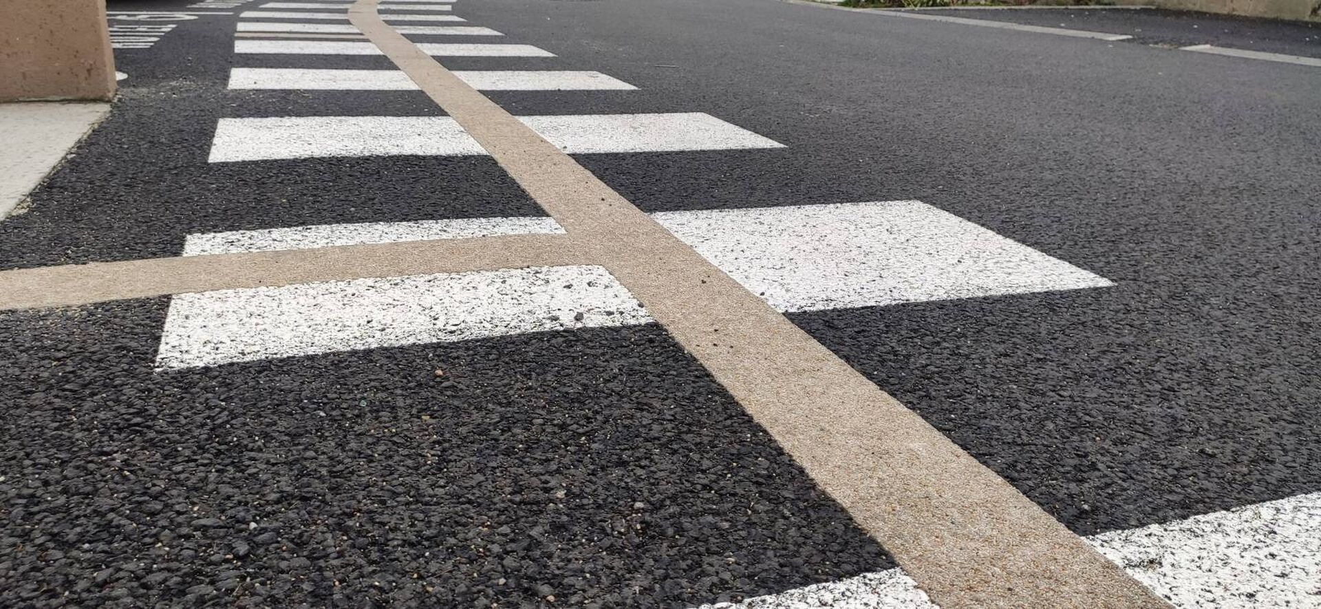 Ces bandes de guidage préfabriquées en résine méthacrylate sont assez cassante sous les passages de roues, c’est pourquoi par expérience, nous privilégions des bandes résines-pépites (avec contraste) d’une largeur de 10 cm bien plus résistantes dans les zones circulées.