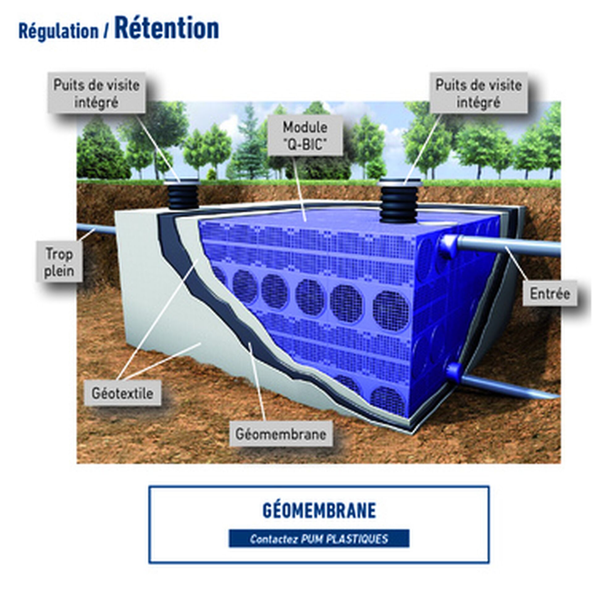 Les bassins de rétention d'Eaux Pluviales sont conçus et dimensionnés pour stocker et gérer les eaux de pluie de manière efficace et écologique. L’infiltration est privilégiée quand les sols le permettent, afin de minimiser les ruissellements. Les bassins peuvent être infiltrants ou étanches (géomembrane) en fonction des objectifs en matière de gestion des eaux et des conditions du site.