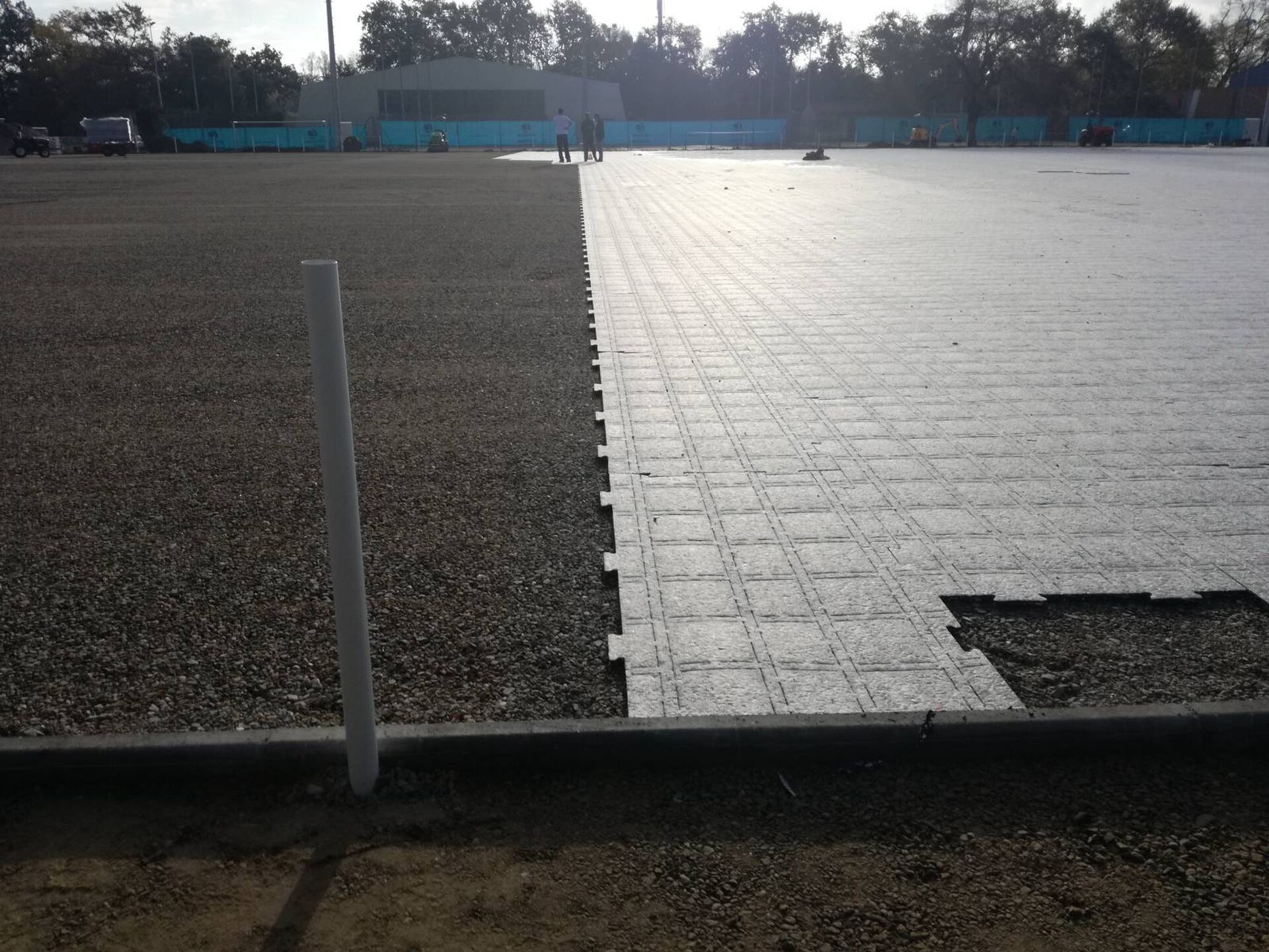 Les travaux ont consisté à décaper les terres végétales existantes, concevoir une plateforme empierrée dimensionnée pour des portances normalisées de 30 Mpa minimum en tous points.